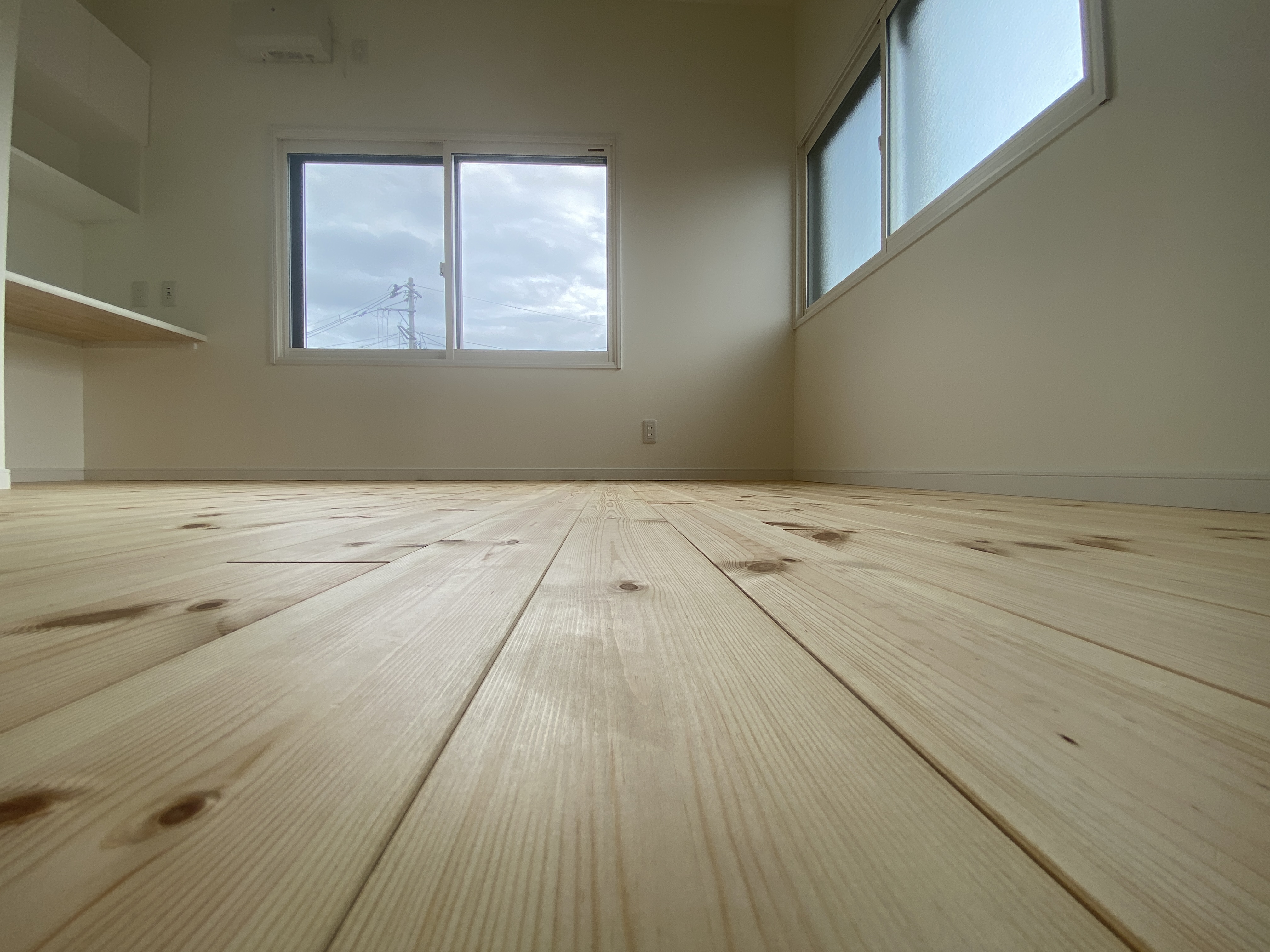 床はパインの無垢フローリング。